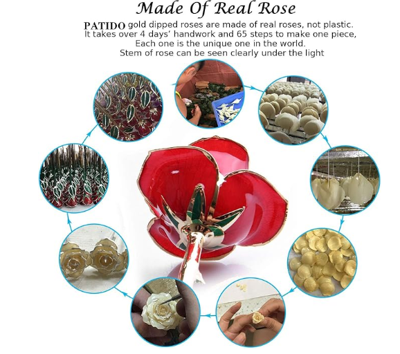 Our 24k gold roses are handmade, and each rose is carefully selected from rose bushes-permanently retaining the beautiful appearance of the roses.